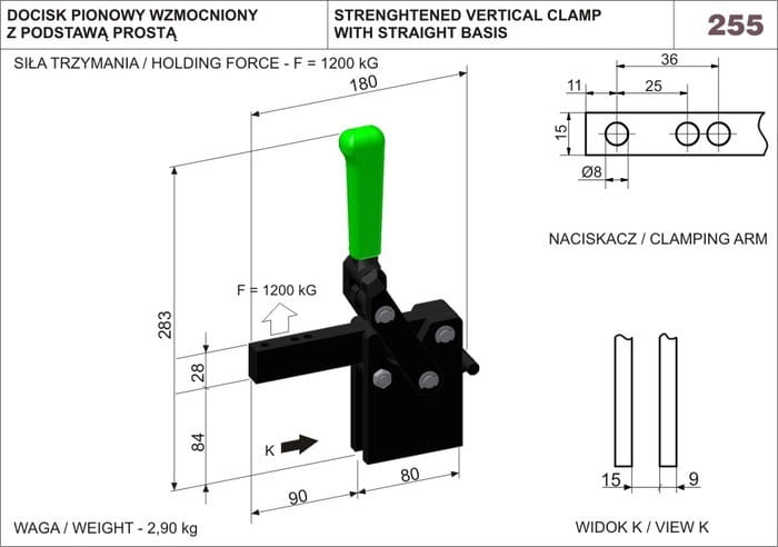 Docisk pionowy wzmocniony z podstawą prostą nr 255