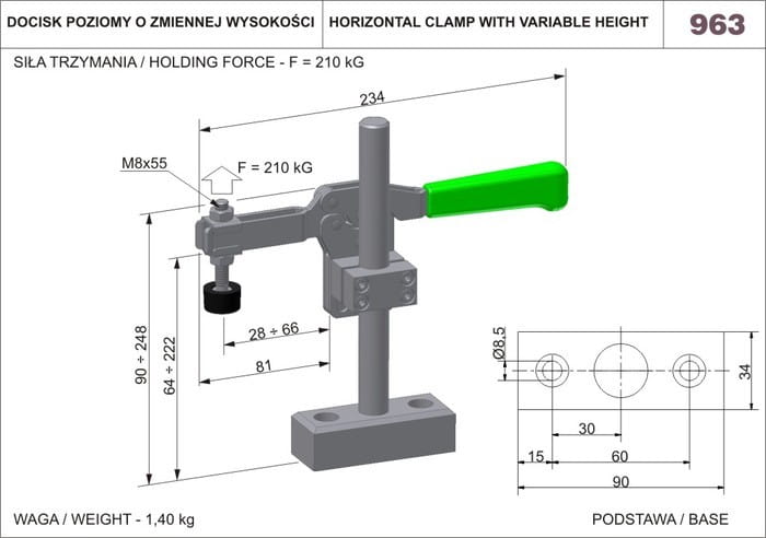 Docisk poziomy o zmiennej wysokości nr 963 RAIS