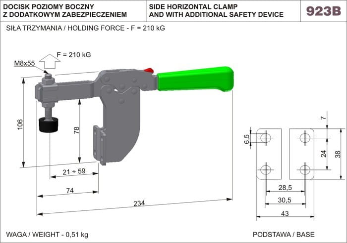 Docisk poziomy z podstawą boczną i dodatkowym zabezpieczeniem nr 923 B RAIS