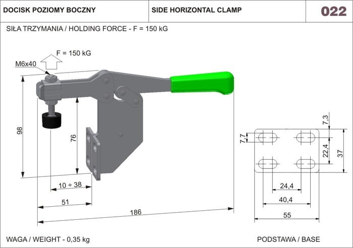 DOCISK POZIOMY Z PODSTAWĄ BOCZNĄ 022 RAIS