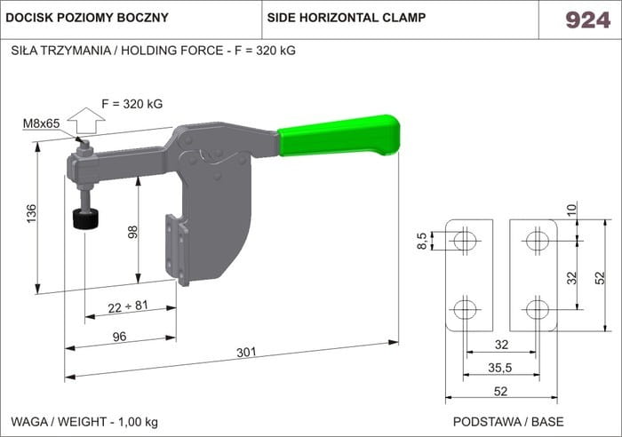 DOCISK POZIOMY Z PODSTAWĄ BOCZNĄ 924 RAIS