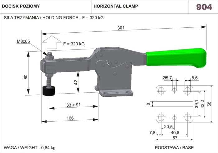 Docisk poziomy z podstawą poziomą nr 904 RAIS