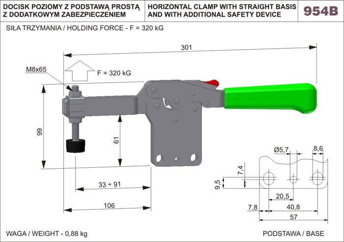 Docisk poziomy z podstawą prostą i dodatkowym zabezpieczeniem nr 954 B RAIS