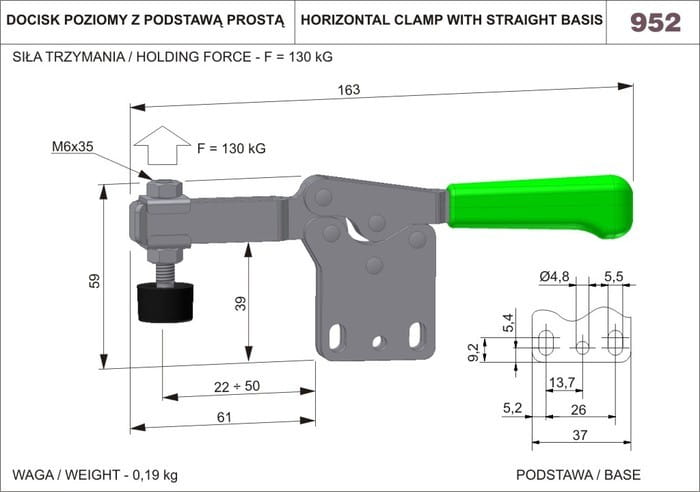 Docisk poziomy z podstawą prostą nr 952 RAIS