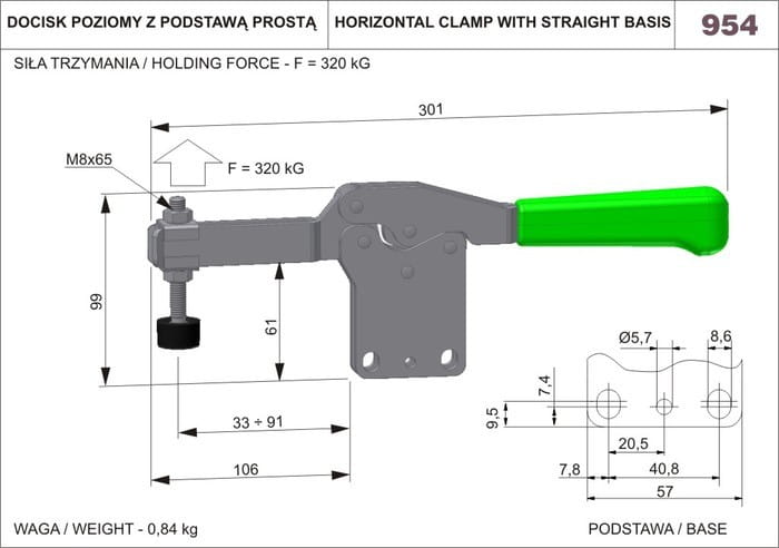Docisk poziomy z podstawą prostą nr 954 RAIS