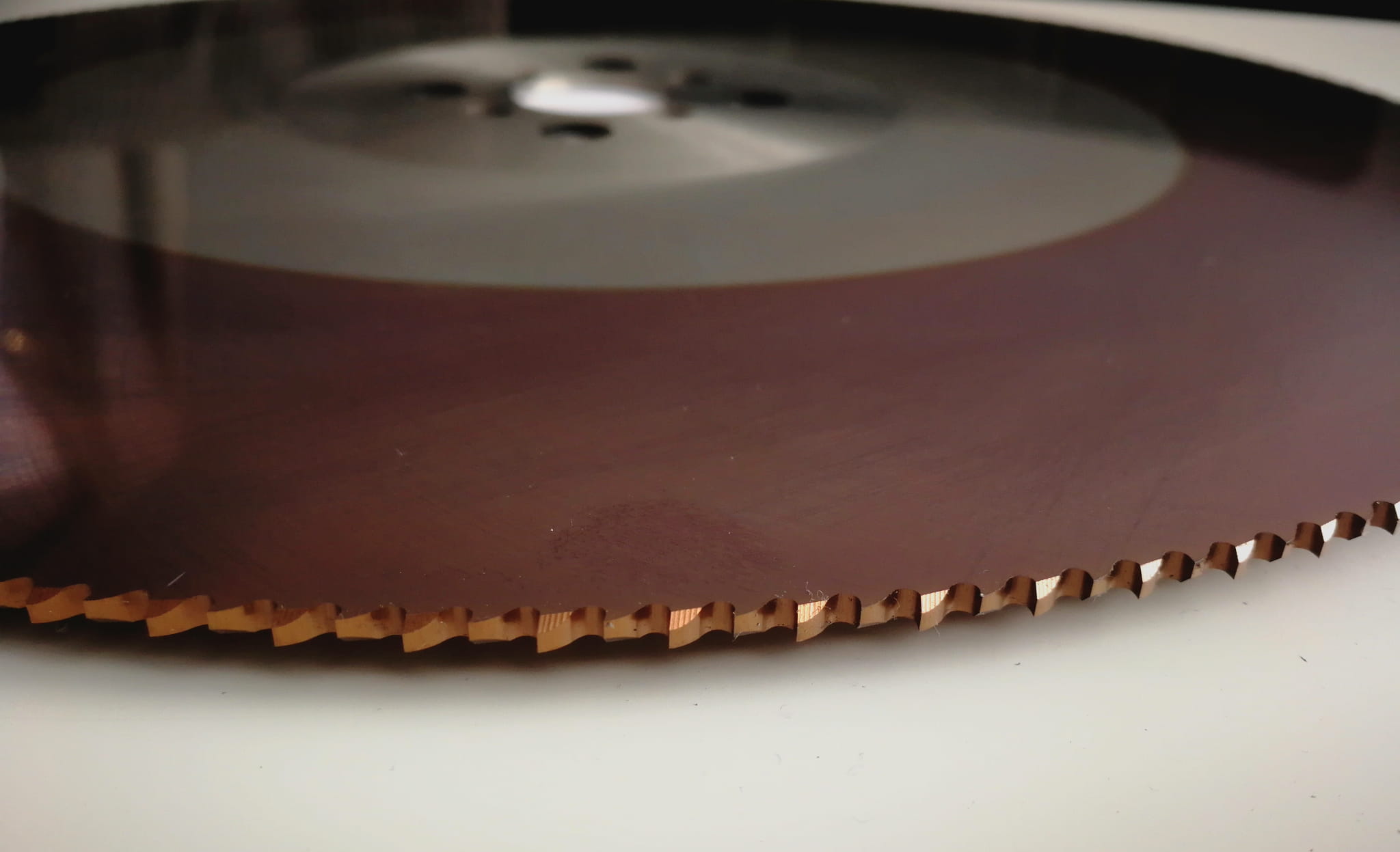 Frez tarczowy wykonany ze stali szybkotnącej z dodatkiem kobaltu, pokryty TiAlN glino-azotkiem tytanu.
