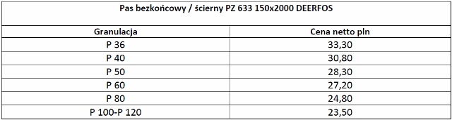 Pas ścierny / bezkońcowy PZ 633 150x2000 P120 DEERFOS