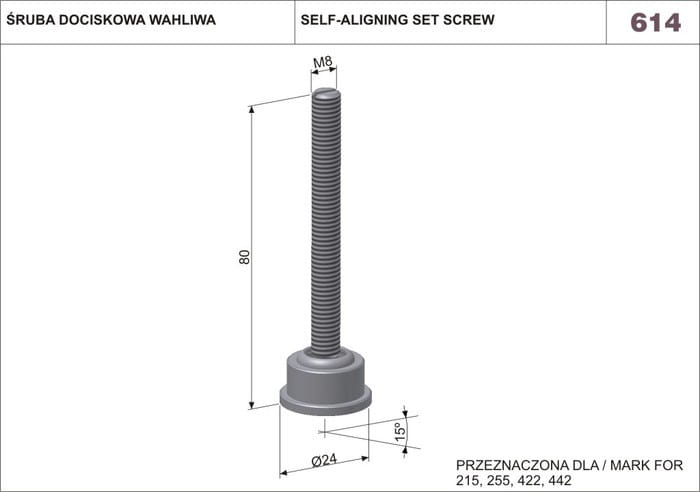 - śruba znajduje swoje zastosowanie w dociskach mocnych oraz pracach spawalniczych gdzie standardowo docisk wyposażony w śrubę dociskową z kapą ochronną nie spełnia swojej roli